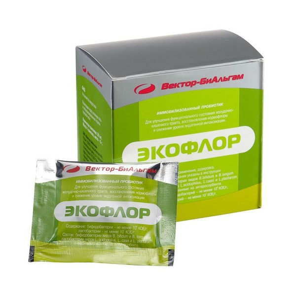 Экофлор является иммобилизованной (на углеродминеральном сорбенте СУМС-1) формой препарата, позволяющей значительно повысить защиту бифидо- и лактобактерий при прохождении через желудок, где обычные сухие препараты теряют более 90% активности.
