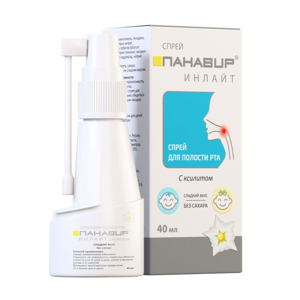 Спрей Панавир Инлайт выпускается во флаконах объемом 40 мл. Упаковка укомплектована длинной насадкой для удобства орошения полостей.